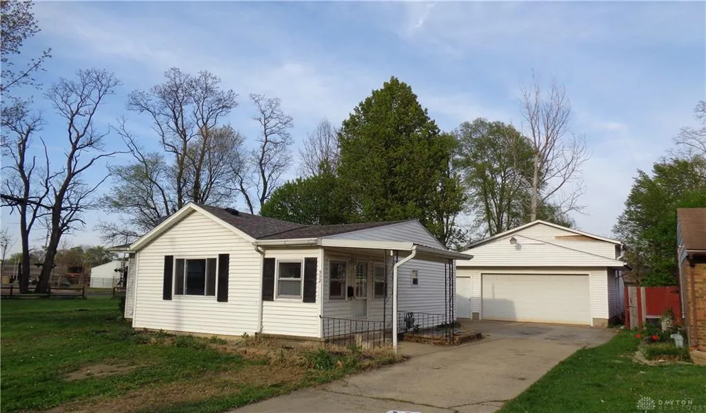 Cute home for just getting started or downsizing! Nice size eat-in kitchen with appliances staying, large bath with tiled step in shower and extra shelving, living room with alcove for TV, two good size bedrooms, separate laundry room with plenty of storage and the washer and dryer stay. In 2015 this home had new furnace, new siding, new flooring, new roof, gutters and new vinyl windows. Outside features oversized 2 car garage with plenty of storage, double decker deck, storage shed, huge fenced back yard (3 city lots) ready for kiddos and pets! Home is very efficient on utilities. Electric monthly average $70, natural gas monthly average $70, water and sewer monthly $65. Won't last long! Call for your private tour today!