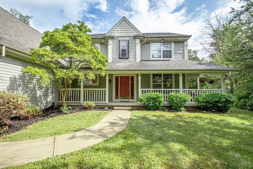 Experience the tranquility of this 5-acre wooded country retreat! This spacious 4-bedroom, 2 full and 2 half-bath home offers over 2,600 sq. ft. of living space. Nestled on a scenic hill near Bantas Creek, the property features a wrap-around porch leading into a foyer with wood floors and a winding staircase. Enjoy elegant details like crown molding and tray ceilings throughout. The formal dining room flows into a bright custom kitchen with 36 cherry cabinets, a breakfast area, and a view of the inground pool and patio. The cozy family room, with a fireplace, opens to the kitchen perfect for entertaining. A large laundry/mudroom connects to the 3-car garage. Upstairs, the primary bedroom has a cathedral ceiling, en-suite bath with a soaking tub, double vanity, and walk-in closet. The finished basement includes a rec room, bar area, half bath, and plenty of storage. Enjoy your quiet haven in the woods, just 2 miles from Eaton!