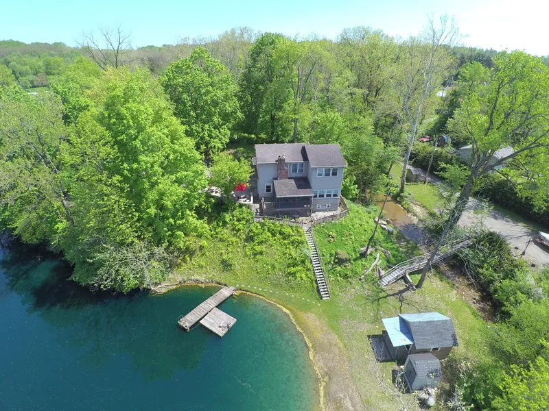 If you are looing for your own piece of paradise then look no further. This property has its own lake which is approximately 17 to 18 ft. deep per the previous owner. There is also a creek running through the property. The lake has its own dock and small raft for swimming, fishing or just relaxing. The home was originally built around 1940 as a cabin for use on weekends and around 2008 the owners decided to add a second floor with a master bedroom, master bath and his and her walk in closets and a great view of the lake. There is a wood burning fireplace with insert, screened in porch, hardwood floors, updated kitchen, large family room. Lower level has a bedroom and a full bath. By the pond there is a beach area, and a pedestrian bridge and small outbuildings. There is a concrete patio area overlooking the lake with concrete picnic tables.