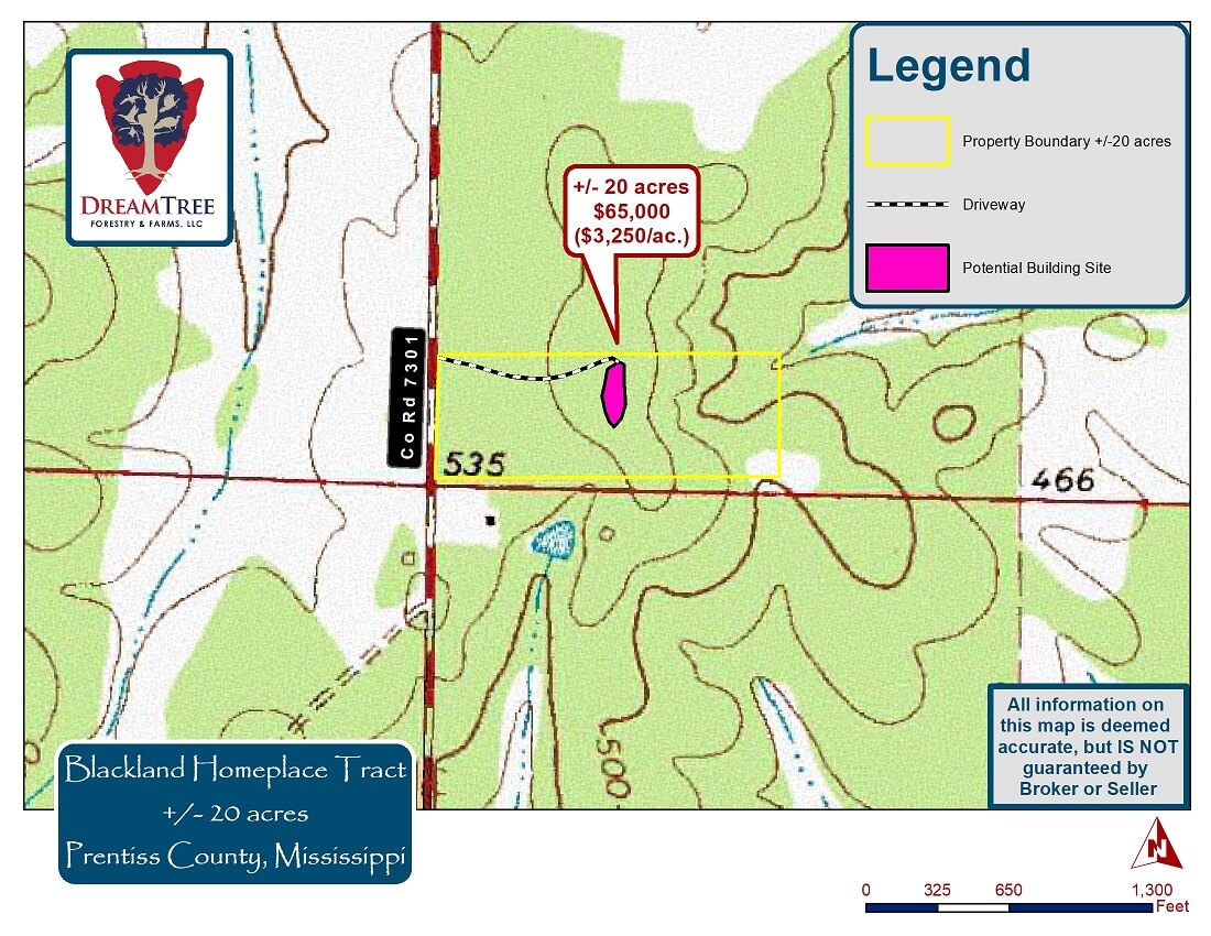 ** UNDER CONTRACT ** PENDING SALE ** !! Beautiful building site !! Water line is in place, driveway is cleared, homesite is cleared, & the certified land survey is complete. Covered in gorgeous mature timber with about half being mature pine & the other half mature hardwood. Surrounded by other large parcels and located in a quiet, coveted community. Access is great with +/-562' of paved frontage on CR 7301. The topography is gentle & there are many signs of deer & turkey! The place beckons for a dream home!