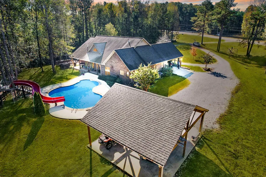 ** UNDER CONTRACT ** PENDING SALE ** BAY SPRINGS LAKE PROPERTY: 5-6 minutes from boat launch at Bay Springs Lake Marina on the beautiful recreational waters of Bay Springs Lake! This 4-BR, 2.5-BA home features a relaxing custom pool with a huge waterpark style slide!! Situated on +/-15.74 acres of stunning land with perennial streams winding through a shaded canopy of mature hardwood forests! Minutes from world-class boating & fishing on Bay Springs Lake. A big, fenced area in the backyard to keep pets safer, housed, & shaded. Plenty of room for boats, off-road vehicles, & everyday drivers in the 2-bay garage & the additional detached 2-bay carport. ALSO, a dedicated study/home office, big laundry/mud room, & tankless water heater. Don't miss your chance to purchase a home like no other!
