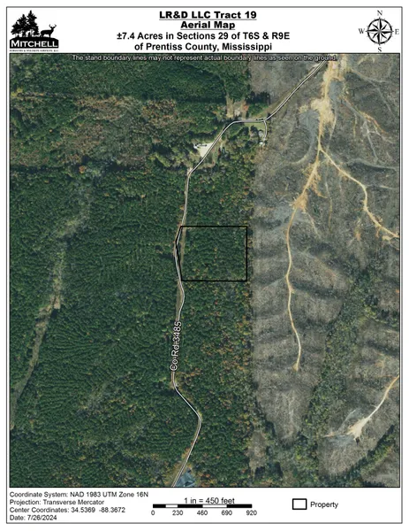 Tract 19 is a 7.4 acre tract with a potential house site or a hunting cabin alongside CR 3485 in Prentiss County. There is approximately 525 feet of county road frontage with power and water available. This property is located in a quiet and rural community just off of the south side of Hwy 4 3 miles East of New Site and 2.5 miles West of Bay Springs Lake. It is in close proximity to multiple public boat ramps and hunting areas, including John Bell Williams WMA, Divide Section WMA, and Canal Section WMA.