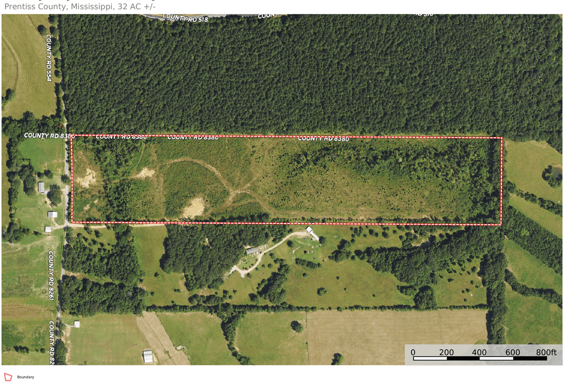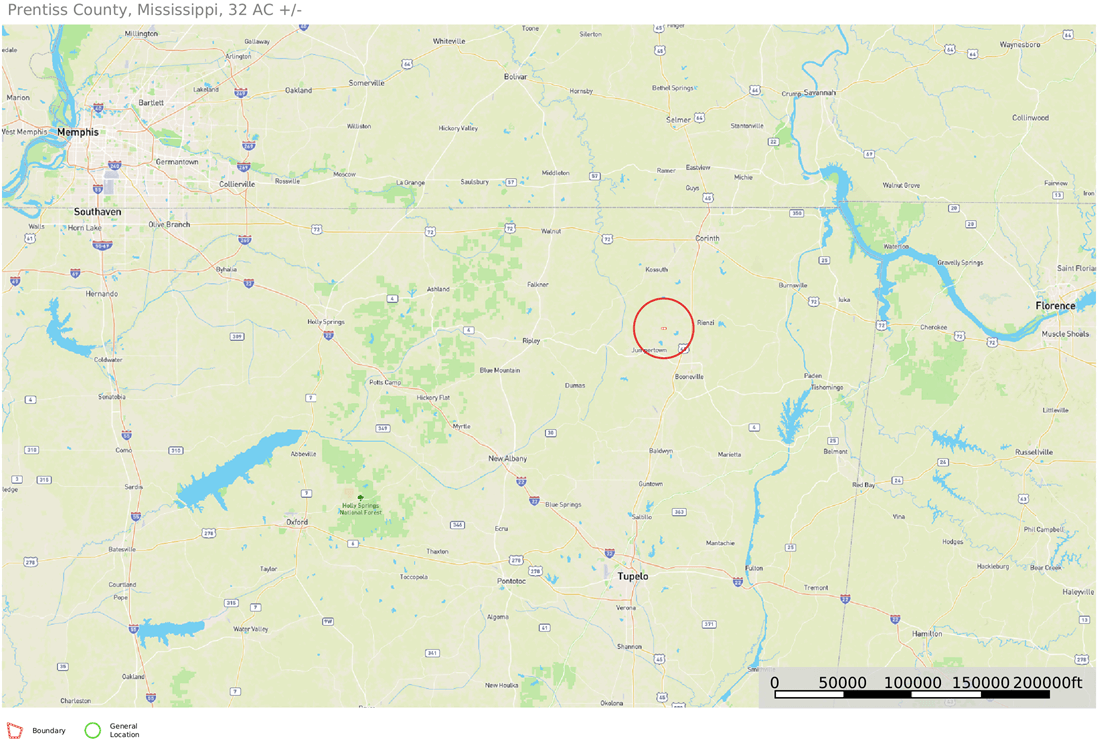 ** UNDER CONTRACT ** PENDING SALE ** +/-32 beautiful rolling acres just begging for a home & a farmer! Located in the peaceful Pisgah/Rienzi communities, this neat property offers +/-520 feet of paved road frontage on County Road 8261, with utilities located near the paved road frontage. There are multiple potential building sites & two small creek branches that ultimately flow into Boone Creek. The gentle hollow in the back would make an excellent location for a pond/lake! This area is well known for its abundant white-tailed deer & wild turkey populations, making it an ideal spot for enjoying the outdoors &/or hunting! Conveniently located apx. 15 minutes from Booneville, apx. 20 minutes from Corinth, & apx. an hour from both the greater Memphis area & The Shoals. All info. provided is deemed accurate, but IS NOT guaranteed by Broker or Seller.