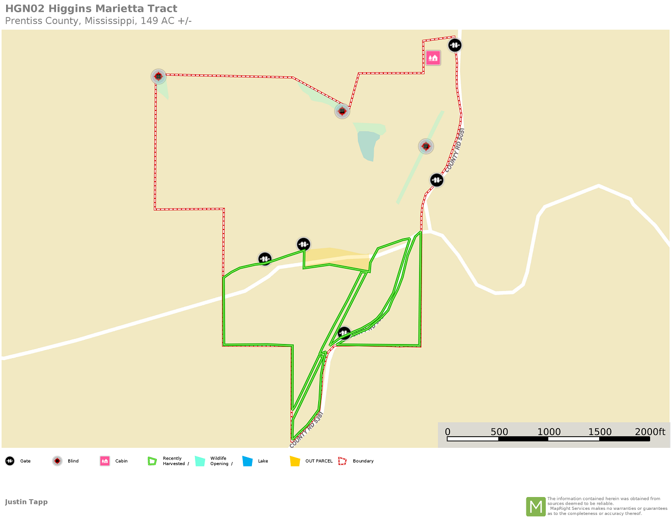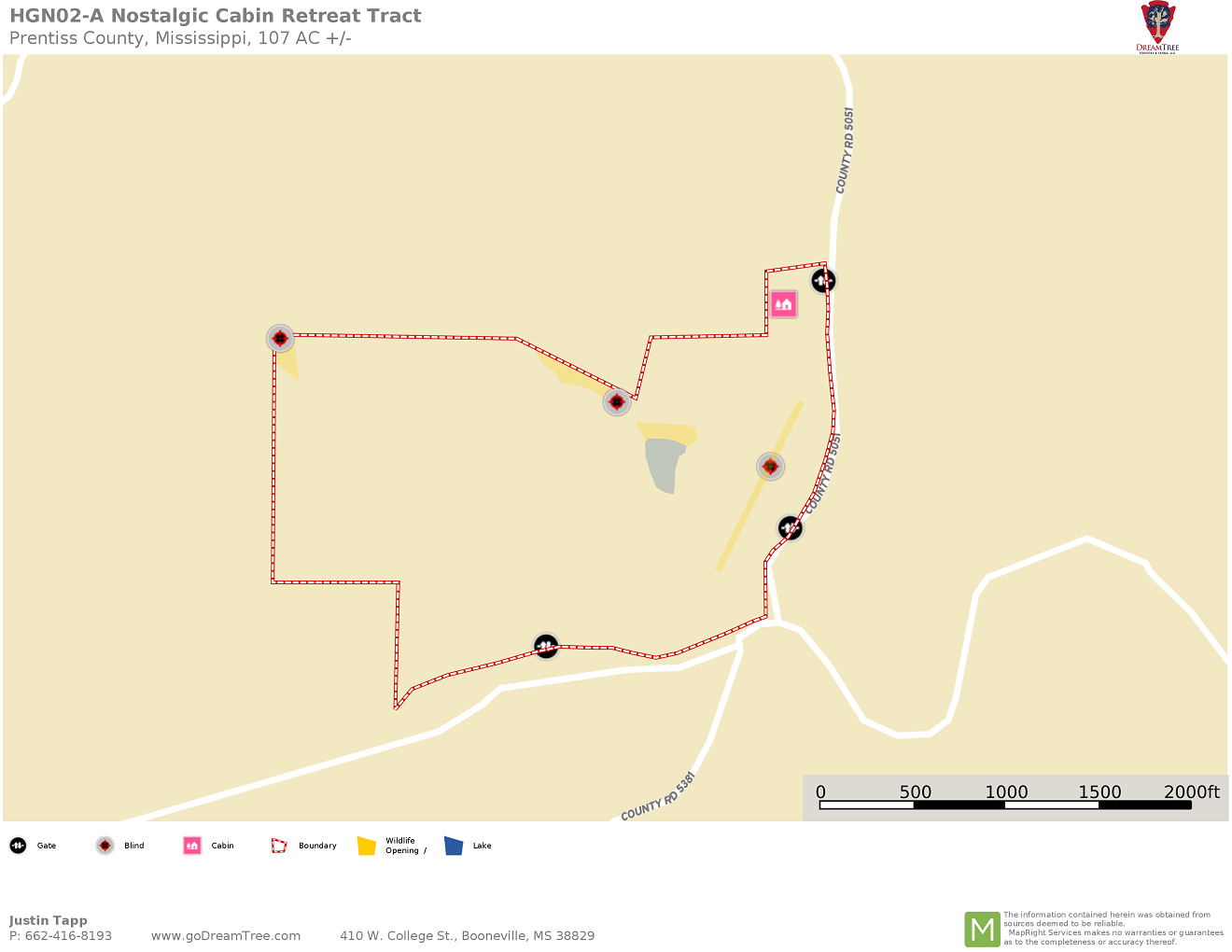 Research Parcel InformationNOTE: If you type in the 911 street address advertised as 194 CR 5051, the GPS will take you to the wrong location... GPS Coordinates: 34.524467, -88.488231 From Marietta: Intersection of Hwy 371 & CR 5051: Travel NW on CR 5051 for 1.6 mi and stay right to stay on CR 5051; travel north on CR 5051 for another 0.4 mi and the gate is on the left.