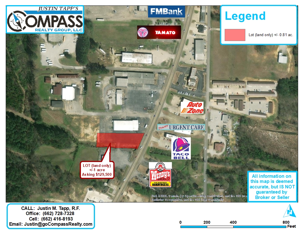 ** UNDER CONTRACT ** PENDING SALE **Prime commercial 0.81-acre lot in the heart of Booneville! Very rare frontage on the MAIN DRAG! This spacious, paved lot offers an ideal location for a commercial business. Located caddy corner from the campus of Northeast Mississippi Community College. Good for various business opportunities with high visibility & easy access. All details are subject to verification. ** Agents, please refer to private remarks for additional information.