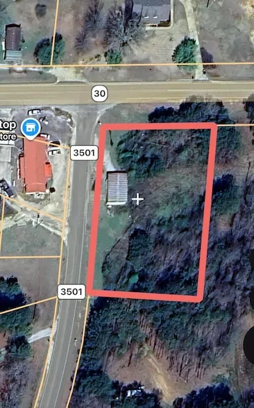 This one-acre corner lot is located at the intersection of Highway 30 and County Road 3501 and offers excellent visibility and access. The property includes a 30x40 metal building with 10-foot sidewalls, a storefront entry, and an 8-foot by 14-foot garage door. The interior of the building is currently divided into two sections but could easily be opened into one larger space if desired. The lot's corner location and road frontage make it well suited for a variety of potential uses, including commercial, investment, or future development. The existing structure adds immediate utility while still allowing flexibility for a new use or conversion, subject to local requirements. Conveniently located just minutes from Piney Grove and Bay Springs Lake, this property offers a strong combination