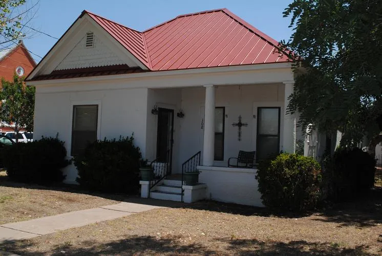 Two bedroom, 1/12 bath home on a corner lot, located in close proximity to the Courthouse. Wood floors thoughout, Formal Dining Room, Family Room and large open period style Kitchen with lots of storage. Utility room off Kitchen. Covered front porch and fenced secluded backyard with mature fruit trees. Carport. Recently replaced metal standing-seam roof. Central heat and A/C.