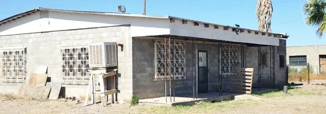 This 2 bedroom, 1 bath home offers over 2,000 square feet with lots of potential. The home is built with adobe and concrete block and has a metal roof. The interior offers vinyl and tile floors, rock accent walls, and evaporative cooling. Home needs some TLC but sits on a large town lot with plenty of space for expansion. The great outdoor space is completely fenced with large outbuildings that can be used for storage or as a barn.