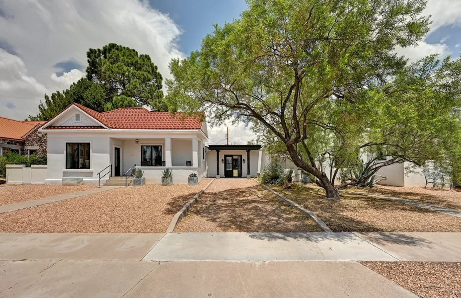 107 E. Washington is a gorgeous, extensively renovated historical home on the northeast corner of the Presidio County Courthouse Square, in the heart of downtown Marfa. This home has hardwoods, upgraded windows, a stone-coated metal roof, and high ceilings. high-end kitchen with marble counters. Across the lush lawn is an elegant 1/1 adobe casita with a utility room. On the lot's northwest corner, there is a covered outdoor living area with a gas fireplace. 2-car carport. 109 East Washington is also available.