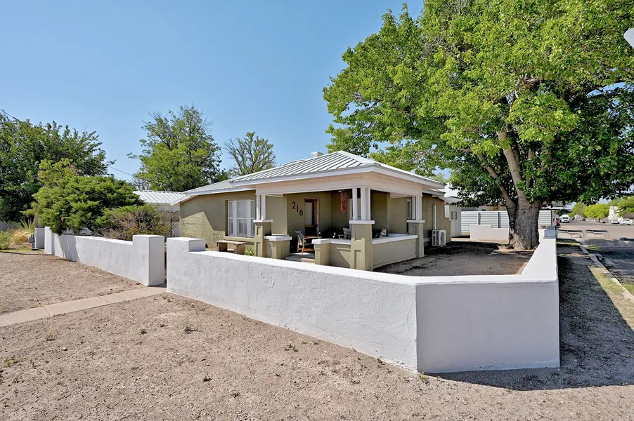 The property has been updated with recent crisp exterior and interior paint, a black and white modern bath, spacious kitchen with solid wood cabinetry, and high-quality, high desert-style finishes throughout. The floor plan is currently configured as a formal dining room, living room, walk-in closet with laundry, a sitting room, and a bedroom with en suite full bath. However, the sitting room is large enough to use a second bedroom and has its own entrance. All rooms have beautiful natural light courtesy of numerous fenestrations, many having historical d...