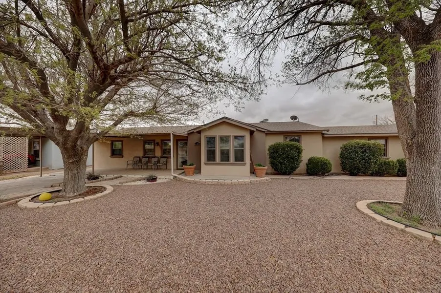 At the northern edge of Marfa with ranch land vistas, 104 E 3rd Street is a renovated 3 bedroom/2.5 bath home with a 1 bedroom, 1 bath casita on a quarter acre lot. This well-maintained midcentury ranch style home has been updated throughout: modern electric and plumbing, stucco exterior, hardwood and tile floors, custom kitchen, xeriscaping, and ~500 sf of covered outdoor entertaining with mature shade trees. Carport parking at the street and from the alley, with separate access to the casita.