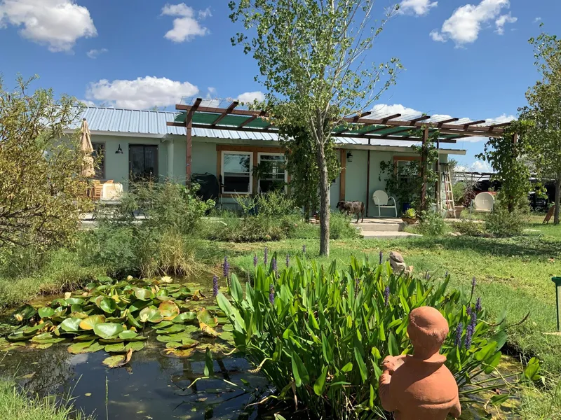 The second house is a restored adobe of approximately 900 square feet with metal roof, new wiring and insulation and new windows. It features concrete floors, wooden vega and corrugated tin ceilings in the two bedrooms, a small central living area with kitchenette, a bath and split unit heating and cooling.