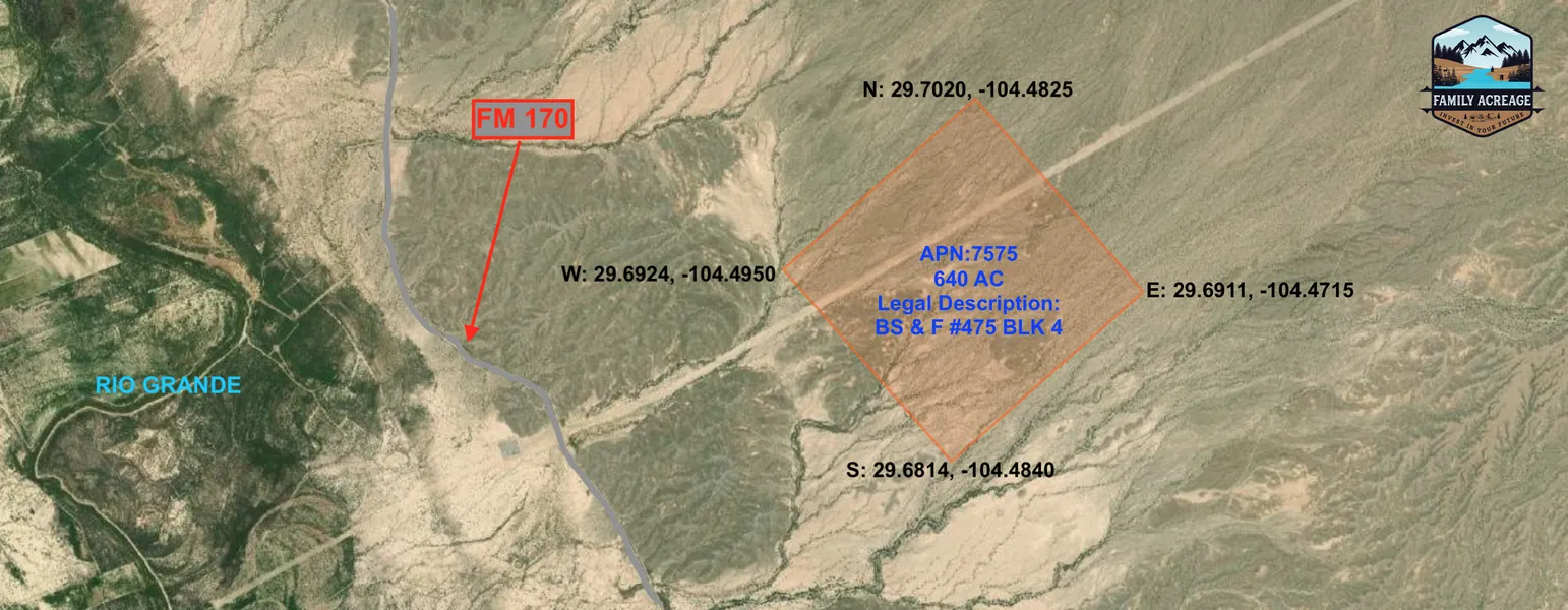 This property is located in Presidio, Tx. Sitting east of FM 170, 13.1 miles to the town of Presidio, 32 miles to Chinati Hot Springs, 40.5 miles to Chinati Peak, 46.7 miles from Big Bend Ranch State Park, 62.7 miles to Lajitas, and 70 miles to Marfa.