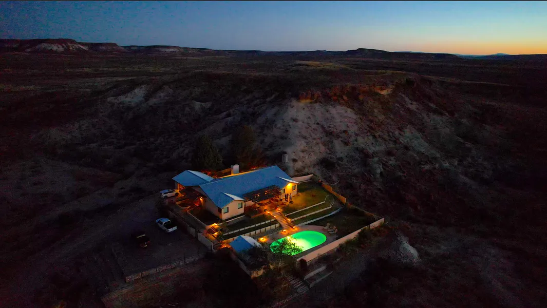 The Spectacular Hawk Hill is 3,168' and 861'of porches with 4 bedrooms, 4 baths, kitchen, main gathering room, stone fireplace, sun porch/dining room, home-office, attached/enclosed 2 car garage, swimming pool and pool casita with full bathroom facilities. Andersen windows and Saltillo tile, a new metal roof, air conditioning system,