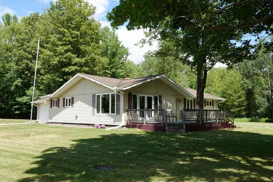 Spacious 3 bedroom, 1 1/2 bath country home on 10 acres. Large kitchen, main floor laundry. 1 car attached garage plus a detached garage w/workshop. Lower level is partially finished and equipped w/a private bar for entertaining.