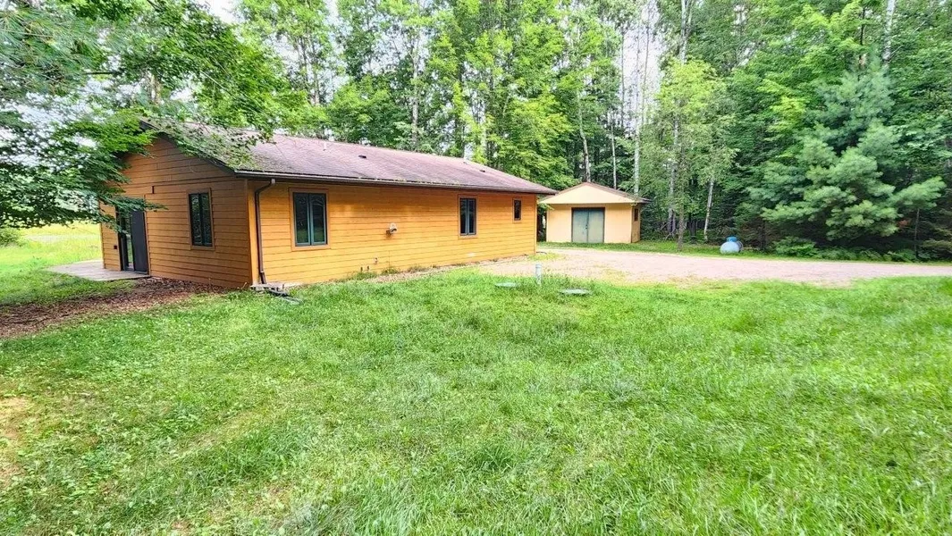 (204/RK-JG) This 2 bedroom, 2 bath year round lake home sits on 7 subdividable acres with lots of (weedy) frontage on 600 acre Soo Lake west of Phillips. Built in 2006 it is solid and well insulated, has an open concept kitchen, dining and living area with two patio doors to a lakeside deck, dock and fire ring. There’s a 12’x16’ workshop with power. Minor home repairs are needed. Private wooded site. Hurry! Asking $235,000. 2024 taxes: $2,756. (Part of SW ¼ pcl desc. in 398495, 12-37-2W).