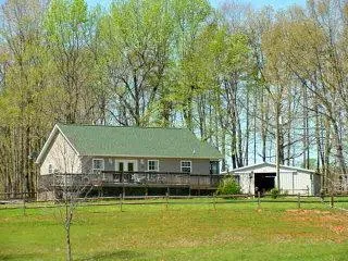 Fox Hollow Horse Farm This picturesque 15 acre horse farm is tucked away down a gambling lane & joins a timber company that has several trails throughout. The land is rolling with a bold woodland stream to the rear. The well designed home sits upon a knoll with a 360 beautiful view. It consists of a great room, kitchen, 1.5 baths, master bedroom with a large private bath and a second bedroom used as an office at this time. A large deck runs across the back and side of the home with a hot tub just outside the door. There is a 3 stall & tack room drive through horse barn plus a storage shed. You will also find paddocks, jumping arena & pasture for your horses. What more could you ask for??
