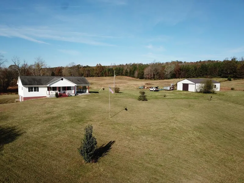 Welcome to Spring Creek! Just surveyed, this 45.49 acres incorporates half of a watershed dam housing a 68-acre lake. The property line does not front the lake but comes within about 30' from the shoreline giving you beautiful sunset views. The southside of this land borders Spring Creek which has excellent fishing at the spillway (brim, catfish, bass). The land is partially open and partially wooded with some fencing for horses or cattle. It has a bold stream that runs through the middle of the property on its way to Spring Creek. It has a HUGE 48'X30' metal garage/shop with electricity, concrete floor and water access just outside the door. This home features 2 kitchens, wood floors, tankless water heater, a massive pressure tank system, drive through parking under the attached carport. Never get wet again unloading groceries! It offers plenty of storage, open views, front porch sittin...