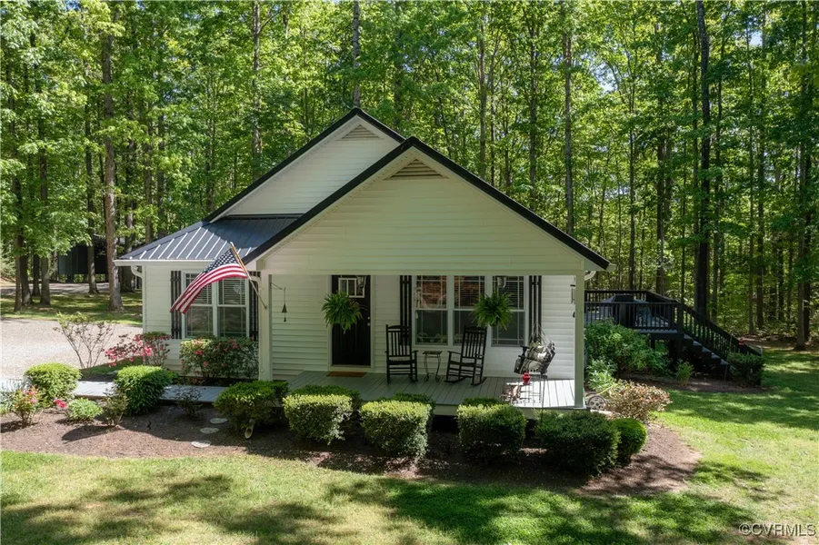 A true slice of paradise awaits on the outskirts of Farmville. This home is tucked away on a 3-acre parcel with a beautiful yard and woods that provide privacy. Enjoy not only a move-in ready home, but also a detached oversized workshop garage and an RV carport. Let's step onto the front porch before heading inside—take a moment to breathe in the fresh air. Inside, the home offers a cozy living area with a stone hearth and a gas stove as its centerpiece. The open-concept living room and kitchen make entertaining easy. The kitchen features new appliances, solid surface countertops, and a window overlooking the side yard. The home has two bedrooms and a full bath on one side—perfect for children or guests—and a private primary suite on the other. The primary suite includes a full bath, walk-in closet, and convenient access to the laundry room. The laundry room leads to the rear yard, while a hallway off the kitchen provides access to the side yard and deck. You'll love the gorgeous wood floors, craftsman-style doors and windows, metal roof, welcoming front porch, side deck, and rear landing deck. Bring your hobbies and cars to the finished garage, complete with a metal roof, concrete floors, finished walls, and a propane heater. It's a true “cave,” perfect for both work and relaxation. The RV carport is ready to host guests from near and far. This is a home that will speak to you the moment you arrive—you'll want to move in right away.