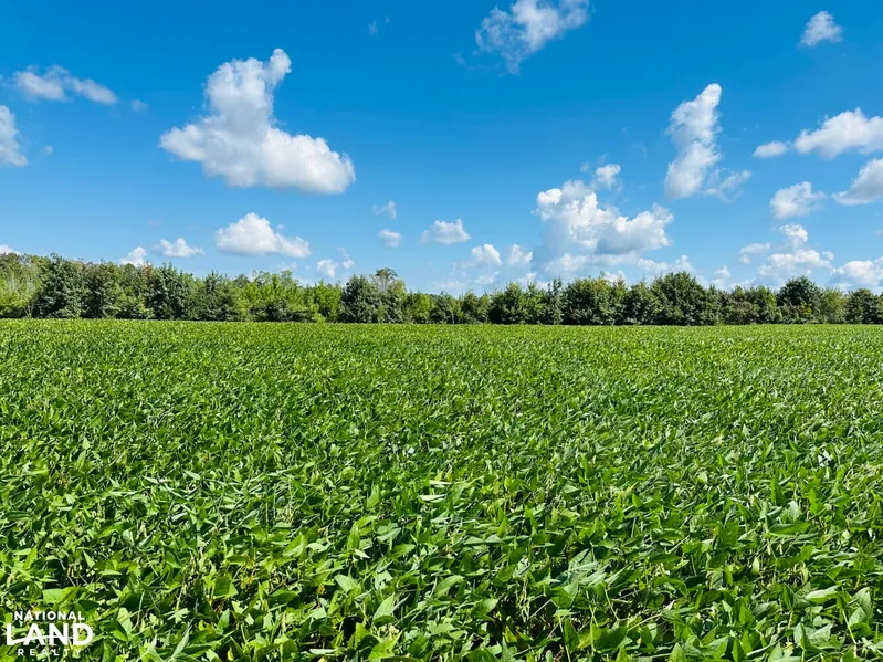 As you take the undulating, U-shaped trail through the fields, you will notice +/- 60% of the land is actively farmed (soy-beans in Summer 2025). The remainder is mostly +/- 5-year-old pine plantation. This is located in the north-eastern section of the parcel and on the topography around the small creek in the center. Although not yet ready to cut or manage, the timber is a great opportunity for recreation uses; cut (ATV) trails through the +/- 35 acres and hunt among the trees.