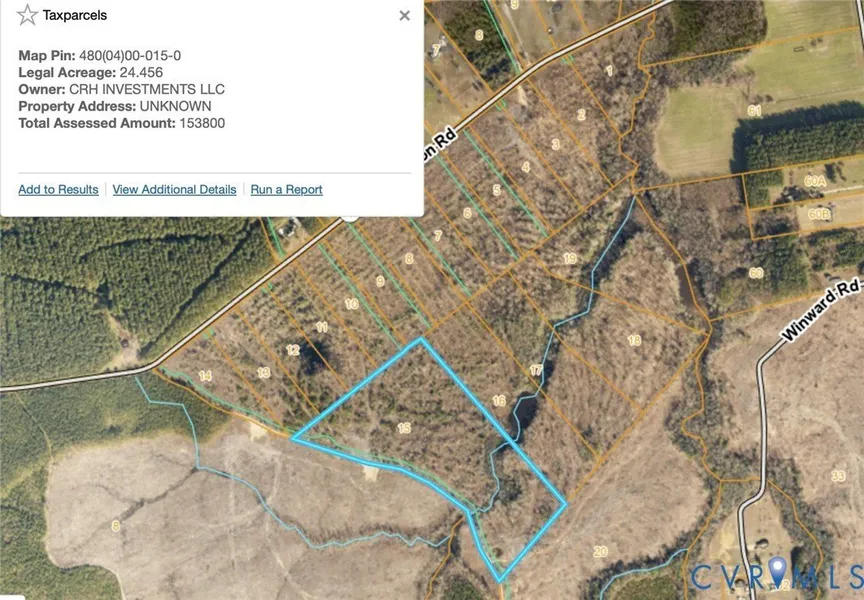 24.456 acres of beautiful untouched wooded acreage in Prince George County! This property is set 900 ft. off the roadway which creates a TREMENDOUS amount of privacy to enjoy. Currently approved for drip septic, working towards approval of a conventional septic. Taxes and Assessments are estimated. Lot has a shared entrance but driveway base is built to get to it. There is a separate prescriptive easement along the lot that allows you to see the lot from the side. While the current soil test shows engineered septic we are testing on the backside where we have found conventional septic on other lots. More pictures to follow. It is possible with driveway improvements to do one more division of the property but that is subject to the county approving it.