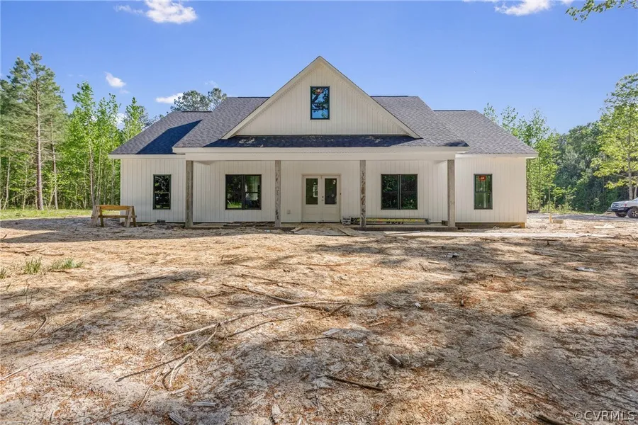 New price is $529900.00 with closing costs paid of $5000.00 for a full priece offer. "THE Honeysuckle" plan built by C&L Construction on Lot 3 in the Newville Woods Subdivision on Pole Run Road, in Prince George County, VA .Home sits on 5 +/- acres and has a conventional septic system. Home features 3 bedrooms, 2.5 baths, with a ceramic tile shower, and a 6' free standing tub, 2 separate sinks and large walk in closet (opens in rear to laundry room) in the Primary Bedroom. The other 2 bedrooms are on the separate side of the house and you have a beautiful vaulted ceiling in the Great Room, Dining Room, and kitchen area separating the bedrooms. The home features Luxury Plank flooring, recessed lights, ceiling fan in primary bedroom and great room. White cabinets with quartz countertops, farm sink and stainless steel finish appliances to include ceramic smooth top range, microwave over the range ,dishwasher and a french door refrigerator, 3 Pendant lights enhance the island bar area and six (6) recessed lights in the kitchen. Exterior features white vinyl Board N Batten siding on the front elevation with white straight lap siding on all remaining elevations, white composite columns on front porch, black exterior w/white interior insulated double hung windows (grills between the glass), 30 year dimensional shingles with ridge vent. You also have a two (2) car attached garage with a drop zone inside the rear home to drop those bookbags, dirty shoes, jackets before heading into your beautiful home.