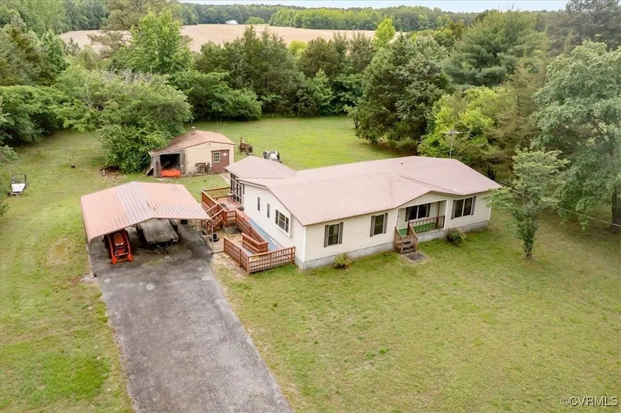 Adorable ranch style home with split bedroom floor plan located in Prince George county is ready to meet it's New Homeowners! This home sits on 2.01 acres and includes an additional 1 acre buildable lot, making it over 3 acres of beautiful rural land. Just minutes from major highways and interstates, it offers quiet, slower paced, and relaxing living without giving up the amenities of being close to the city. Inside features a spacious living room filled with abundant natural light, a formal dining room, kitchen, 3 bedrooms, and 2 full baths. The primary bedroom is on the right side of the home, complete with a primary bath en-suite and double closets. The other 2 bedrooms are located on the left side and both feature walk in closets. Outside, you'll notice the beautiful covered front porch, rear covered and screened in deck- perfect for entertaining and relaxing, double width driveway, carport, and utility building - spacious enough to complete projects and storing all your lawn tractor, tools, etc. Recent updates include new HVAC unit, metal roof is less than 10 years old, and fresh interior paint.