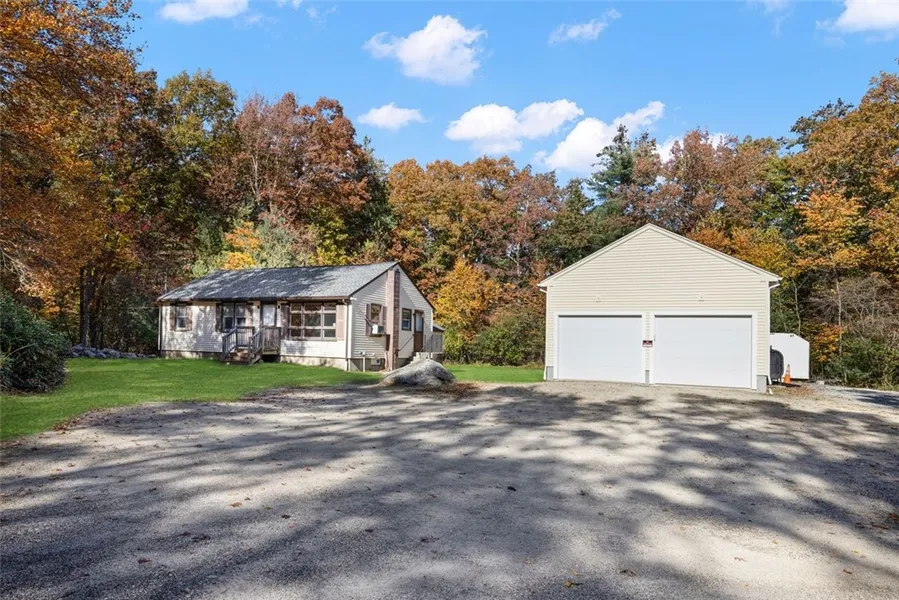 **ALL OFFERS DUE 11/2 BY 5PM** Check out this charming 3 bed, 1 bath Ranch nestled on a quiet country road in desirable Smithfield, RI. Built in 1957, this well cared for home features excellent ease of access to and from the surrounding areas combined with privacy. The home and property has had many updates over the years. The house is seated on a one acre wooded lot, with a 24'x32' detached heated 3 Bay garage/shop - a mechanic's dream! The main living space includes a bright living room entrance with excellent condition hardwood floors, just over 3 year old laminate flooring throughout the rest of the home and an ample sized kitchen. Down the hall, three well-sized bedrooms with closets are situated perfectly for one level living, with the full bath just before them. This cozy Ranch has so much potential! The septic system was completely replaced in September 22' with a future addition in mind. Do not wait to see this great property today!