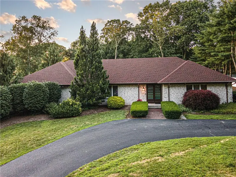 This stunning Knight Farm single-level brick ranch offers over 3,000 sq ft of living space on just over an acre, featuring 3 spacious bedrooms with large closets and 2.5 baths. The home boasts an updated kitchen with custom finishes, first-floor laundry for convenience, and expansive entertaining areas highlighted by a double-sided fireplace and a bar, perfect for gatherings. Outside, enjoy the tranquility of a custom-designed pond/pool with a beach entry, creating a unique and relaxing oasis. With luxury finishes throughout and ample room for both comfort and entertainment, this home is a must-see. Schedule your showing today! Subject to seller finding suitable housing.