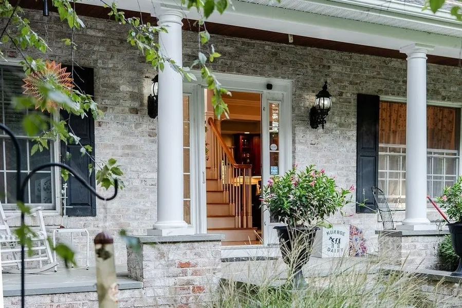 Nestled on over 7 wooded acres, this stunning Tuscan-style brick home is approached by a long, gated driveway, offering a grand sense of arrival. Inside, rich hardwood floors flow throughout the spacious 5-bedroom, 4.5-bath layout. The formal dining room opens to a gourmet eat-in kitchen and a cozy living area with a slate and stone fireplace, perfect for entertaining or quiet evenings.