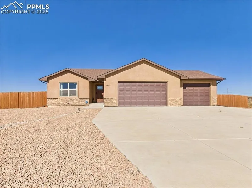 Discover exceptional living in this beautifully designed 5-bedroom, 3-bathroom ranch-style home, where style meets functionality. The inviting open-concept floor plan effortlessly connects the living, dining, and kitchen areas, making it perfect for entertaining or daily life. The chef's dream kitchen boasts wood flooring, elegant granite countertops, a spacious island, stainless steel appliances, and a stone accent wall. Retreat to the luxurious primary suite, featuring a walk-in closet and a spa-like 5-piece ensuite with granite counters, a soaking tub, and a walk-in shower. Additional bedrooms are generously sized, and the finished basement expands the home with three more bedrooms, vaulted ceilings, and a half kitchen wet bar—ideal for hosting guests or creating a dedicated entertainment space. Designed for comfort and efficiency, this home includes LED flush mount lighting, a tankless water heater, and a radon mitigation system. The exterior offers a beautifully xeriscaped lot with a fenced backyard for privacy and easy maintenance, plus convenient pull-through gates for storing large vehicles or boats. A 3-car attached garage provides ample parking and storage. Situated in the desirable Pueblo West community, this property combines modern amenities with a peaceful setting. Don’t miss the opportunity to own this exceptional home!