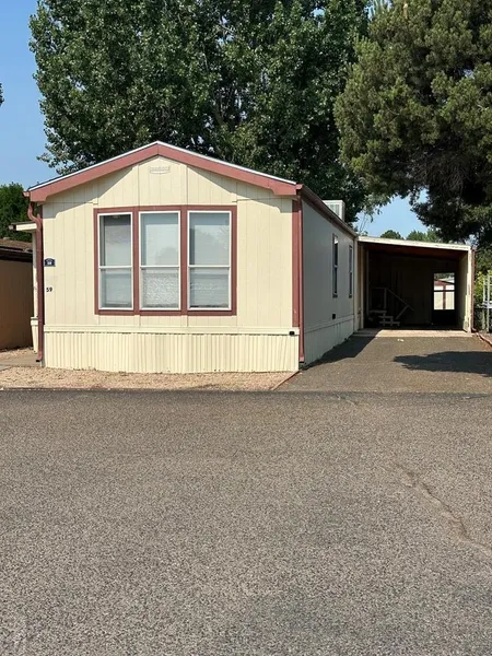 This mobile home is located in the Oasis Mobile Home Park. The home has big rooms, 2 walk-in closets, huge kitchen with a ton of counter space, cabinets, and an island with a big hood. There is also built in book shelves, ceiling fans, french doors to the master, covered front porch, shed, and a carport big enough for most vehicles. All appliances included! You do not own the land or water/sewer taps. You must be 55+ to reside there and must apply for acceptance. Space rent is $606 and includes water and trash. Lot size is approximate.