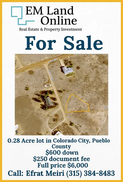 The property is located northeast of downtown Pueblo, near Colorado City. It is accessible via I-25 and local roads leading to Colorado City. The lot is situated within a residential area with existing homes nearby and is reachable by public roads.