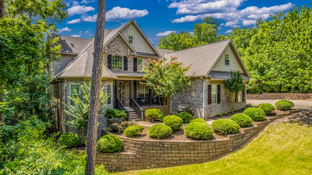 This is such a great floor plan. Two bedrooms on the main floor, Wonderful Cathedral ceiling in Great room. Beautiful Crown molding and Iron railings line the stairs. There are two bedrooms up plus a large game room and wonderful office that has a view of the river in the winter. Speaking of river, the neighborhood has a private boat ramp to river, picnic area and basketball court. It also has another private park with walking trail and play ground. Under the house is a large work shop/storage area.