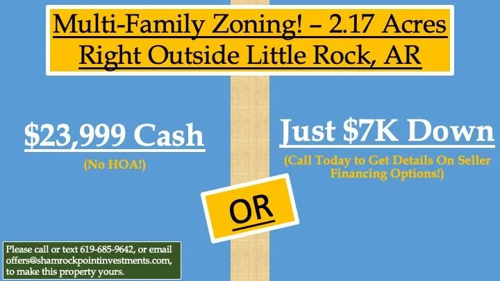 Fantastic 2.17-acre lot located on Nina Street in Jacksonville, AR 72076. This property features Multi-Family Zoning, allowing for versatile development options, including modular homes. Whether you're planning to build your dream home or an investment property, this lot offers endless possibilities. To locate the property, simply plug these coordinates into Google Maps: 34.8594, -92.124.