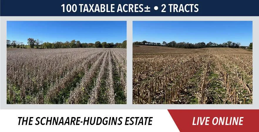 Both tracts of the Schnaare-Hudgins farm will be sold individually, on a price per acre basis, based on the taxable acres. The tracts will be offered through the marketing method of Buyers Choice, whereas the high bidder can elect any tract(s) for their high bid. If the high bidder does not elect all offered tracts, then the remaining tract will continue to be offered Buyers Choice until all tracts have been elected. The tracts will NOT be offered in their entirety at the conclusion of the auction.