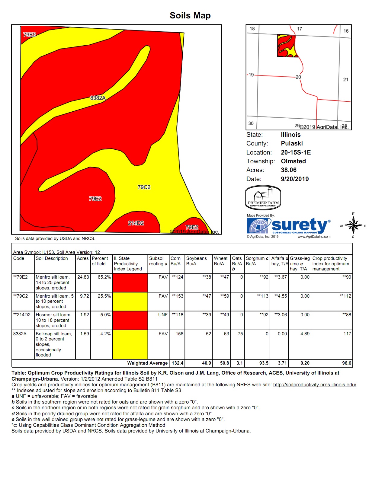 Search for detailed parcel information including; Elevation & Vegetation Maps, Ownership Information, Detailed Parcel Information, Crop History Map, Soil Survey Productivity Data, and more.