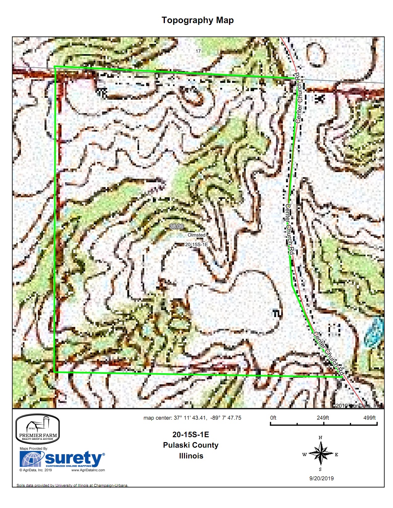 38+/- acres located on the west side of Center Church Road in Pulaski County, IL has everything you would want in a property. The property has hard road access, with water and electric available at the road. There is a perfect spot to build a cabin or dream home just off the road, or you could move it back for more privacy. The timber stand is large enough to hold a deer or turkey, and has a good supply of marketable, mast producing oaks. There are small fields that are surrounded by timber that are perfect for food plots. Access to the property is from the east, so prevailing westerly winds will be in your face as you approach stand sites. The current owner has planted sunflowers for doves here with good success.
