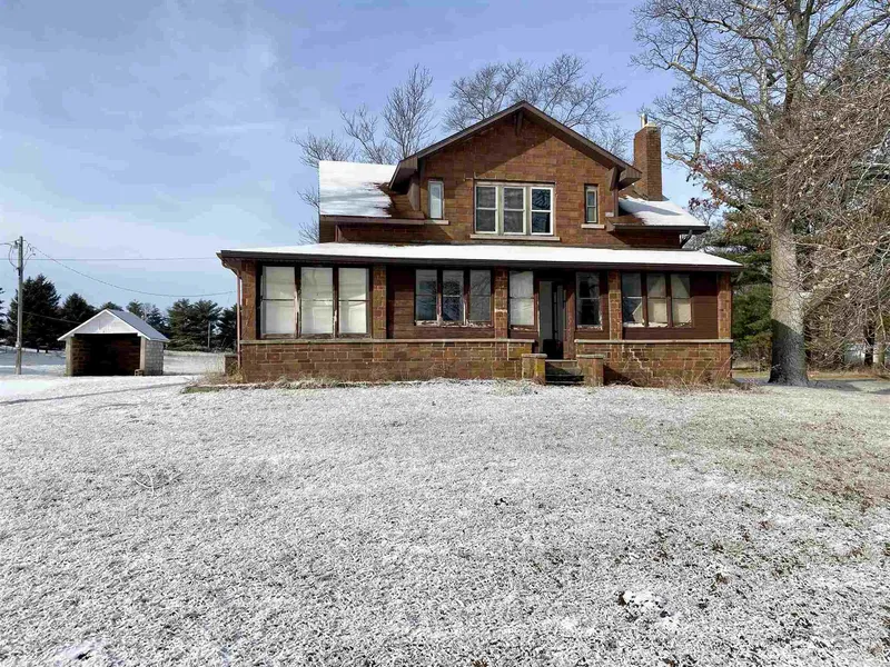 Fixer upper property located just west of town on 3.75 acres! Wrap around enclosed front porch and attached 2-car garage with extra workshop space. Large open kitchen with breakfast bar, formal dining room and living room with wood burning fireplace. One bedroom with built-in closet and full bathroom on main level. Upstairs offers 4 additional bedrooms, jack-and-jill bathroom and large walk-in closets. Full walk-out unfinished basement with laundry and extra storage rooms. Water filtration system, gas water heater and newer furnace. Located conveniently outside of town with large yard, utility shed, open field and fire pit. Property is being sold in as-is condition.