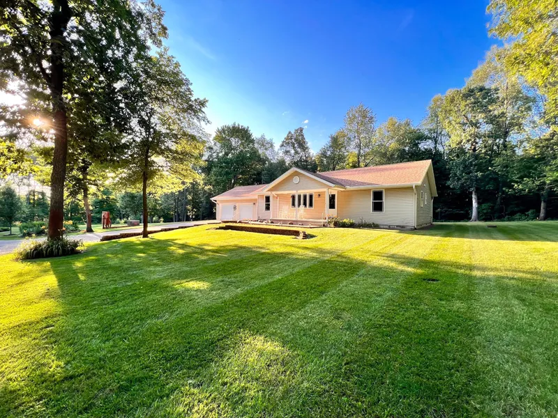 Offered for sale is a 1380 sq. ft. home sitting on a quiet gravel road. This home features three bedrooms, two full bathrooms, and an attached two-car garage. Step into the home from the garage, and you will notice your first bedroom as well as a full bathroom located just across the hallway. Down the hallway, you will find the open concept kitchen, dining, and living area. In the kitchen, you will find a breakfast bar that is perfect for sitting down and enjoying your morning breakfast. Walk out your dining room sliding doors, sit on the back porch, and take in this property's scenic views. Located at the other end of the home, you will find the two other bedrooms as well as the other full bathroom. Walk out your front door, and you will notice across the driveway sits a small storage shed and a pole barn that offers a small garage/shop area as well as guest quarters that could act as an office or a room for storage. Located at the south end of the property is 6+/- acres of wooded acreage that has a well-maintained trail system that provides easy access throughout the entire property. As you walk the trails, you will notice the amount of deer sign that this property offers. There are deer trails running all throughout the woods! In the woods sits a small open area that would be a great spot for a small secluded food plot to bring the deer to you. This property has some great trail camera history and a great reputation for large deer running around the surrounding area. This property is connected to a lot of surrounding timber, not to mention a steep hillside that runs the east side of the adjacent property that deer use as a main travel corridor. A home and property that offers this much does not come on the market often, so take advantage of this opportunity and contact Andrew Malott or Rob Styka for a private showing today!