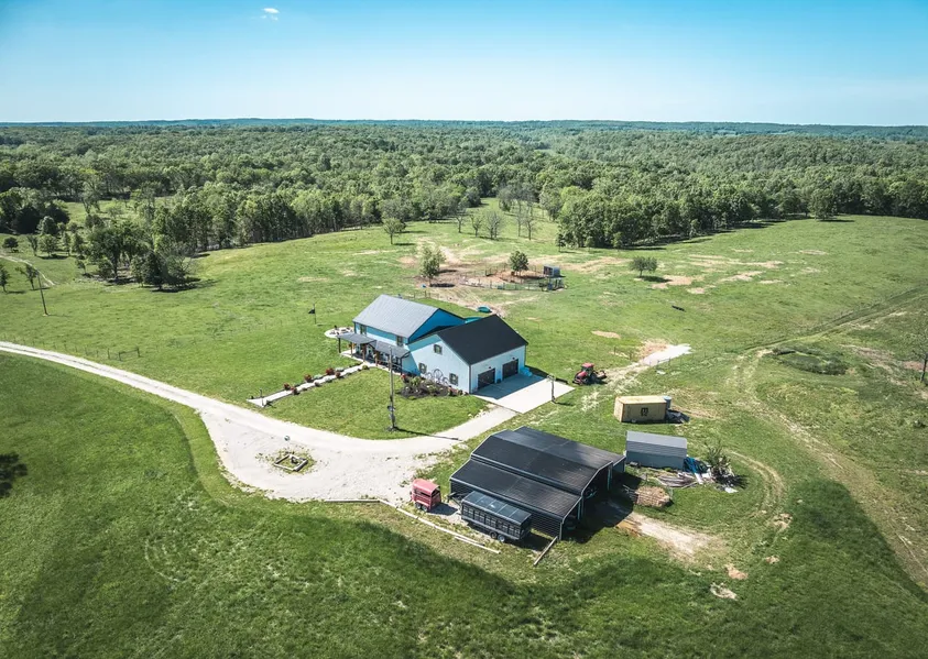 PRICED BELOW APPRAISAL! Exceptional newer modern farmhouse 3-bed 2.5-bath home sitting on 15 acres with NO RESTRICTIONS! 2.5 miles to the Gasconade River access boat input, just minutes from Waynesville, MO, only 19 minutes from Fort Leonard Wood and 36 miles to Lake Ozarks! This property is located inside Swedeborg R-III school district & the specific address uniquely provides options of 3 High School options of Waynesville, Richland, or Crocker. This home offers 2,600 sqft of luxurious up-to-date living with 18' ceilings and 72 windmill fan in the main living area and 9' ceilings in the master. The home features a sleek kitchen with quartz marble countertops, Thermador commercial range/oven, & dishwasher, a commercial glass-front refrigerator, and a custom island light. The master suite offers a skirted cast iron free-standing soaker tub and a zero entry shower with custom shower doors! Standout details include 9’ Andersen double entry doors, 5-panel interior doors, Andersen windows, a built-in fireplace wi the shiplap surround up toward the soaring ceilings and a wraparound porch with recessed lighting, perfect for enjoying the stunning land and picturesque sunsets. An 80x40 structure to store hay, equipment, used as an animal shelter or additional vehicle parking when needed. Other amenities include ADA-compliant 36 main door clearance, Bluetooth speakers in rear pool patio lights, a 30’ above ground pool and a completely finished 1,600 sqft attached heated and insulated garage/shop which features metal walls, perfect for car washing and fits 4 - 5 vehicles and a UTV. This home also features stunning exposed ductwork! The wraparound concrete walkways to the outside lead to a large built-in firepit patio which overlooks the incredible views this one-of-a-kind property offers! This home is packed with stunning modern yet farmhouse finishes! The optional additional acreage provides electric along the fields!