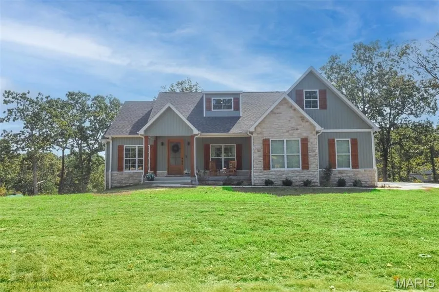 Fall in love with this 2024 custom built 1.5-story ranch, designed with thoughtful upgrades you won’t find anywhere else! Set on nearly 2 acres in the Waynesville School District and just minutes from FLW this 5 bedroom, 3 bath home includes both in home and separate entry options for a flexible mother in law suite or potential Airbnb income! Step inside from the covered front porch to luxury vinyl plank flooring, vaulted ceilings, recessed lighting, and a custom stone fireplace. The kitchen impresses with quartz countertops, tall soft close cabinetry, black stainless appliances, gas range with vent hood, built in microwave, trash pull out, cabinet pantry, and a large island with pendant lighting. From the dining area, step out to a covered back deck overlooking open acreage and a spacious yard. The primary suite offers deck access, dual vanities, soaking tub, glass-tiled shower, and walk in closet with direct laundry access. Two guest bedrooms (one with a climb-up loft) and a full bath complete the main floor. The finished walkout basement includes a family room, two bedrooms, full bath, and large storage area with John Deere garage door. Smart features include a full home network, access control system, hardwired Ubiquiti cameras with DVR storage, a basement safe room, and built in gun safe that unlocks with your phone. Originally designed for the builder himself, this property has it all—modern upgrades, flexible living, privacy, and security!