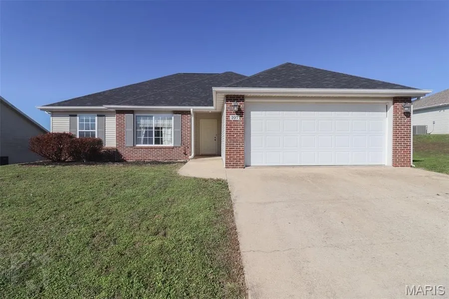 The big stuff? DONE! New roof (2024), new HVAC (2025), and water heater (2023). Welcome to this charming 3 bedroom, 2 bathroom ranch inside the city limits of Waynesville in the cute Pioneer Ridge subdivision, minutes to downtown, schools, shopping, and Fort Leonard Wood. Step inside to an open-concept layout with luxury vinyl plank flooring, a vaulted ceiling, and great natural light. The kitchen features white cabinetry, laminate countertops, stainless steel appliances, a center-island breakfast bar for morning coffee or quick snacks, and a closet pantry for extra storage. Off the kitchen you’ll find the laundry room and access to the 2-car garage. Down the hallway, the primary suite includes a tray ceiling, walk-in closet, and a private bath with a double-sink vanity, light oak cabinetry, shower/tub combo, and a linen closet. Two guest bedrooms (both carpeted for comfort) and a full g...