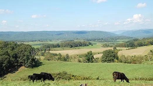 This desirable 109.5 acre working farm with expansive, panoramic views of surrounding mountains, including Brush Mountain and Cloyd Mountain, will be offered in seven tracts ranging from 2.0 acres to 44.7 acres. The property features rolling terrain, extensive frontage on Neck Creek and frontage on two state roads. Most of the farm is fenced pastureland or hayfields. Approximately five acres are wooded. Improvements include a well-maintained and updated four bedroom, 2,050 sq. ft. country home and five outbuildings.