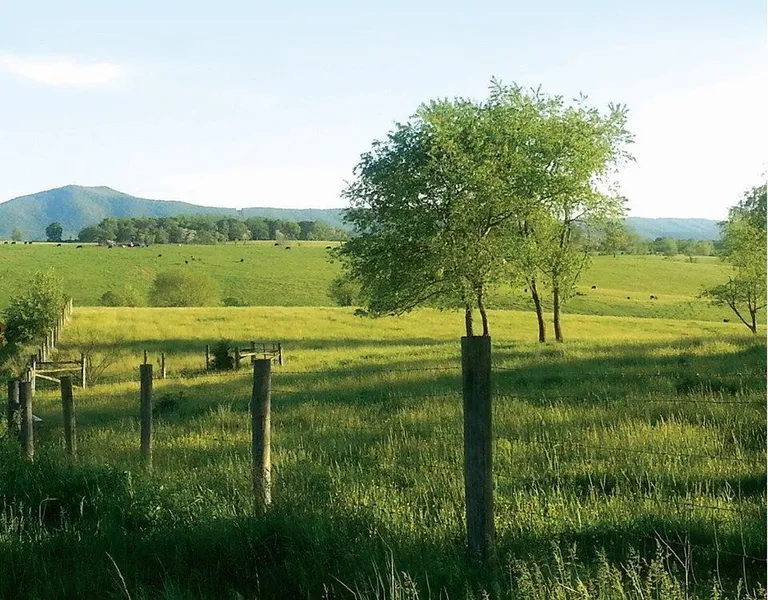 The property, with two parcels located at the corners of U.S. Route 11 (Lee Highway) and State Route 807 (Hatcher Road), has more than 1.9 miles of road frontage. The land is gently rolling with approximately 325 acres in pasture and most of the balance in hayfields. The boundary features a pond, a stream and several desirable building sites with expansive views of the surrounding mountains. Improvements include a barn, outbuildings, an old farmhouse, and a frame house that was previously a rental property.
