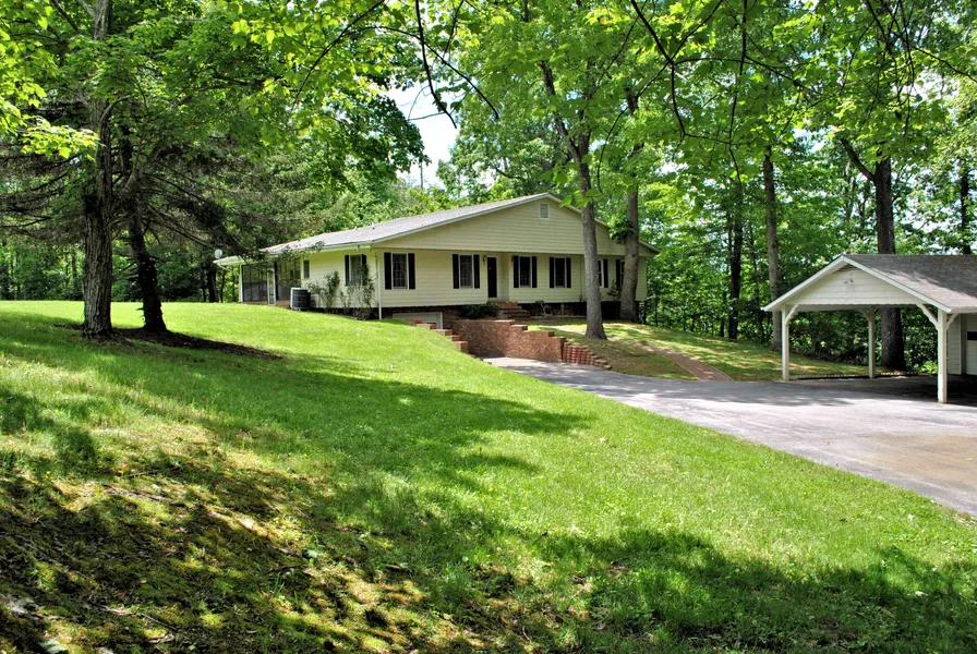 Beautiful lake property on three parcels of 14.761 acres with lots of frontage on Peak Creek! The 4BR, 3BA ranch home is surrounded by your own personal forest of trees that creates a private retreat and a trail that leads down to the lake. A perfect home for gatherings with a formal living room, family room with windows on all sides, formal dining room and an eat-in kitchen with exposed beams and a gas log fireplace to enjoy on cool evenings. Master bedroom and 2 additional bedrooms on the main level that share a Jack & Jill bathroom. Enjoy your morning coffee in the sunroom with great views. Very large bedroom downstairs makes a perfect guest room. The basement and detached garage have room for storage and there is a deck on the back perfect for summer barbecues. You will feel like you are on vacation every day.