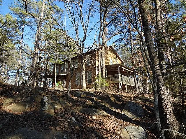 Secluded get-away featuring 80 pretty acres full of trees, creek and peace & quiet. Large cabin with 2 full baths, 3 dorm-like rooms, big rock fireplace. Shop, electric, telephone and well on property. Come see!