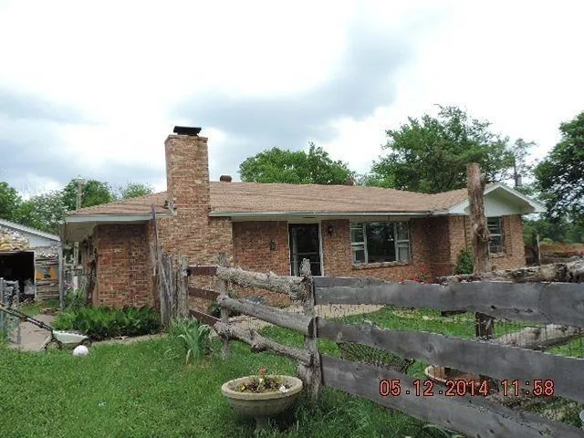 Peaceful small town living in this cute 2/1.5 brick home on 1.5 acres. Fireplace with insert in living area. Property has several mature fruit trees and 3 almond trees. Fenced garden area with 4 raised beds. 15x20 outbuilding with concrete floor, old post office building used for storage, one-car detached garage and chicken coop. Property has well and propane tank on premises, well is in need of repair and propane to home needs to be re-plumbed.