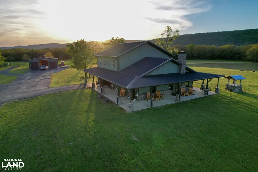 Outside, the property is a paradise for outdoor enthusiasts. The three ponds are stocked with fish, making them perfect for a relaxing day of fishing. A clear-water stream meanders through the property, offering a peaceful spot for a picnic or a leisurely stroll. The surrounding land is ideal for hunting, with abundant wildlife including whitetail deer, turkey, and offers the chance of encountering elk.