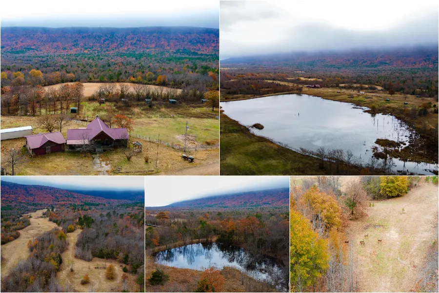 Located just southeast of Talihina, OK in Pushmataha County Oklahoma sits a 372 +/- acre ranch with breathtaking views of Tombstone Mountain. Post Oak Creek Ranch is packed full of potential. Whether you are looking for a recreational hunting ranch, waterfowl hunting, a hobby farm, a cattle ranch, or a horse ranch the Post Oak Creek Ranch fits the bill for all of them. As you turn in the ranch off of 1630 Rd. you'll immediately notice a log cabin that over looks well maintained pastures on the frontage and two beautiful water features. The largest of these water features being a stocked 7 acre lake. The lake sets up perfectly for fishing or recreational waterfowl hunters. The log cabin sits elevated and has a great 360 degree view of the ranch plus to the south there is a breathtaking view of Tombstone Mountain.